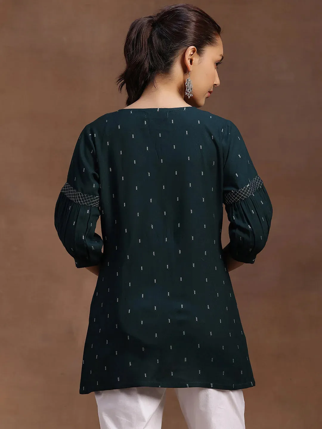 Green Woven Design Rayon A-Line Kurti