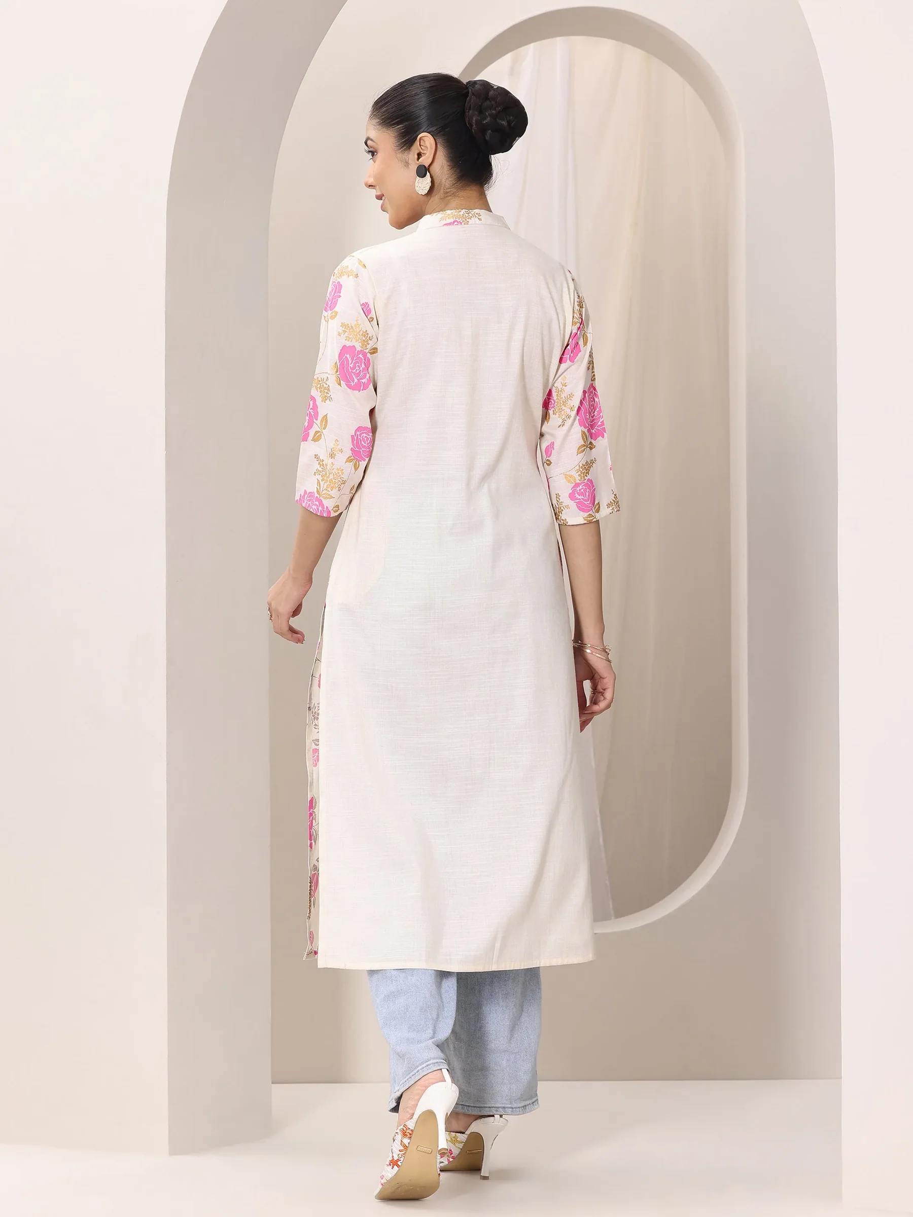 Off White Embroidered Cotton Straight Kurta