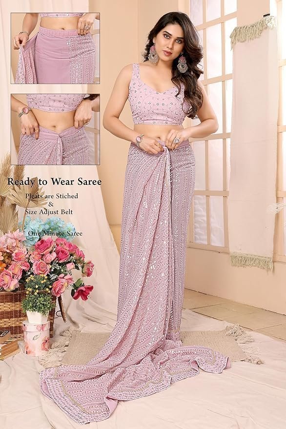 Women Georgette With Sequence Ready to Wear Saree